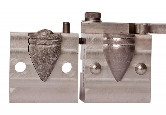 Kule støpt i original tang til venstre, og svartkrutt.nets kammerladerkule til høyre: